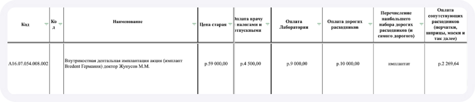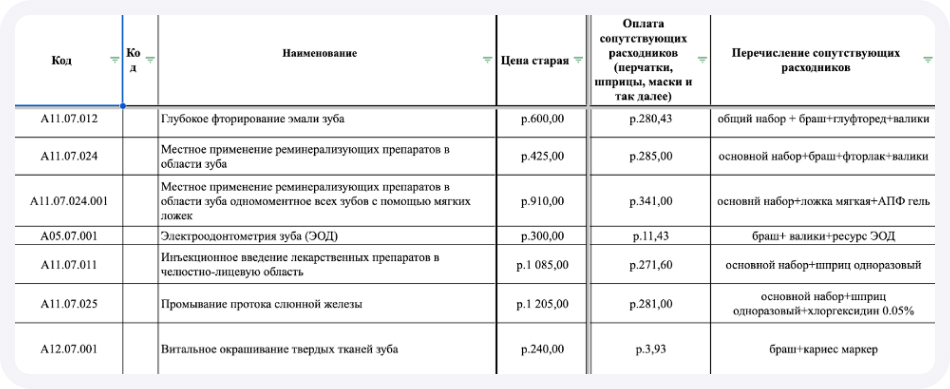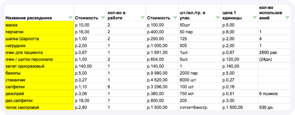 И провели итоговый расчет себестоимости каждой манипуляции ↓