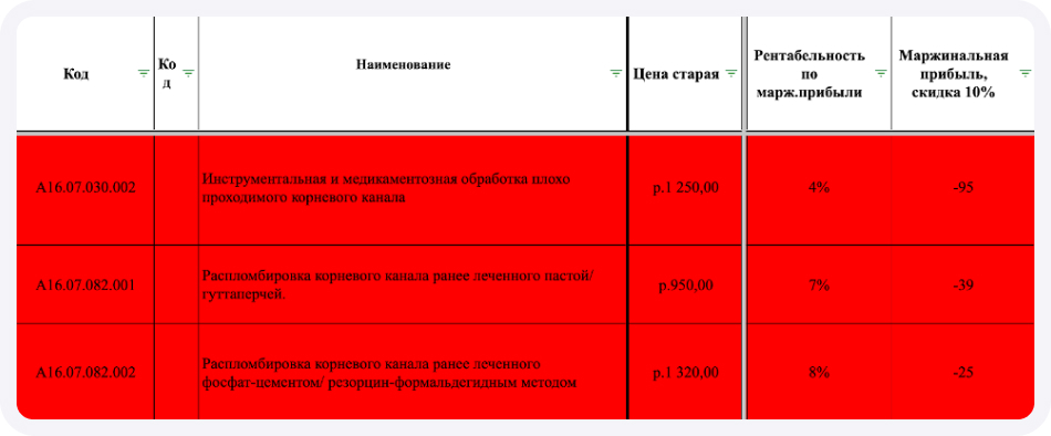 Пересмотрела прайс-лист, повысила цены на убыточные позиции и исключила нерентабельные услуги.
