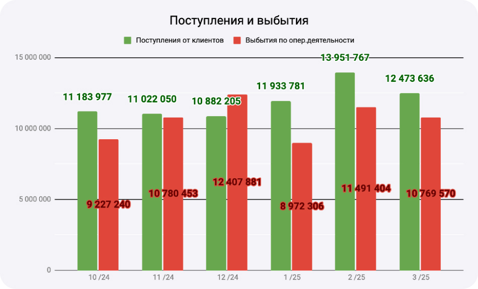 Итог: рост выручки на 16% в первом квартале 2025 года привёл к пропорциональному увеличению поступлений от клиентов.