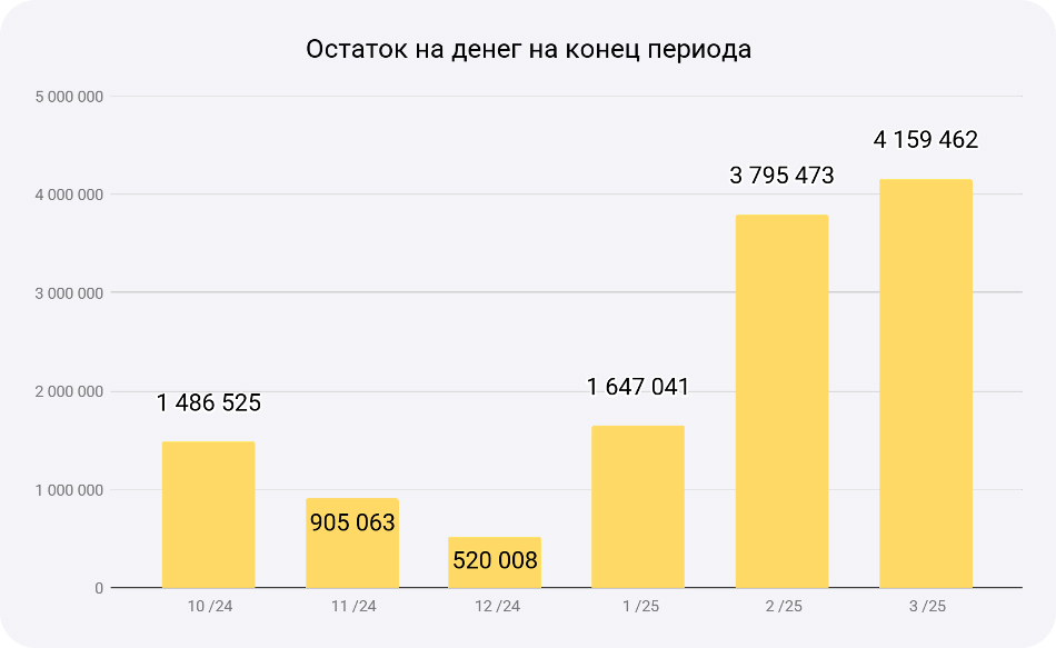 Основной задачей стало наладить управление денежными потоками, чтобы исключить кассовые разрывы и увеличить остатки денег на счетах к марту 2025 года, чтобы у «Зубной феи» наконец-то появилась финансовая стабильность.