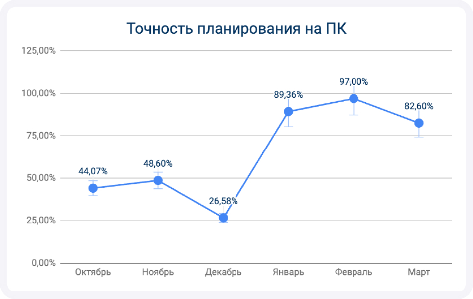 Итог: уже к январю 2025 года точность планирования остатка денег достигла 80–120%, и начала формироваться подушка безопасности.