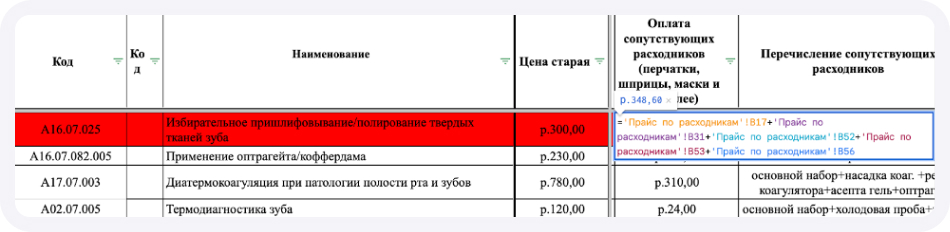 Затем собрали цены на расходные материалы по действующим прайсам ↓
