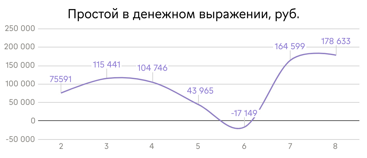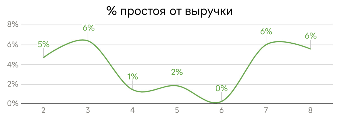 Простои > 5% выручки — сигнал к реорганизации операционных процессов.