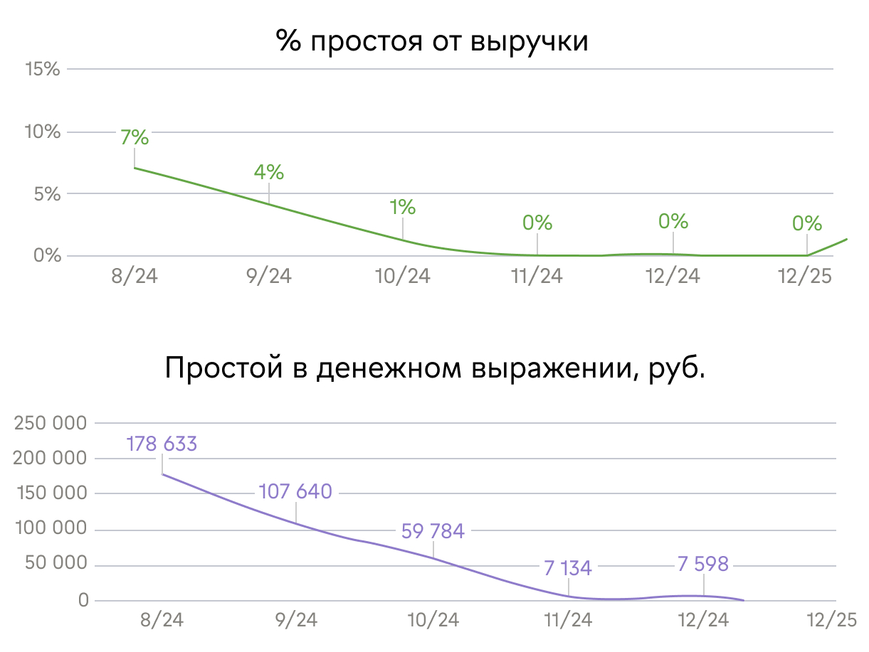 Простои до 10% выручки разделили на два типа и исправляли системно.