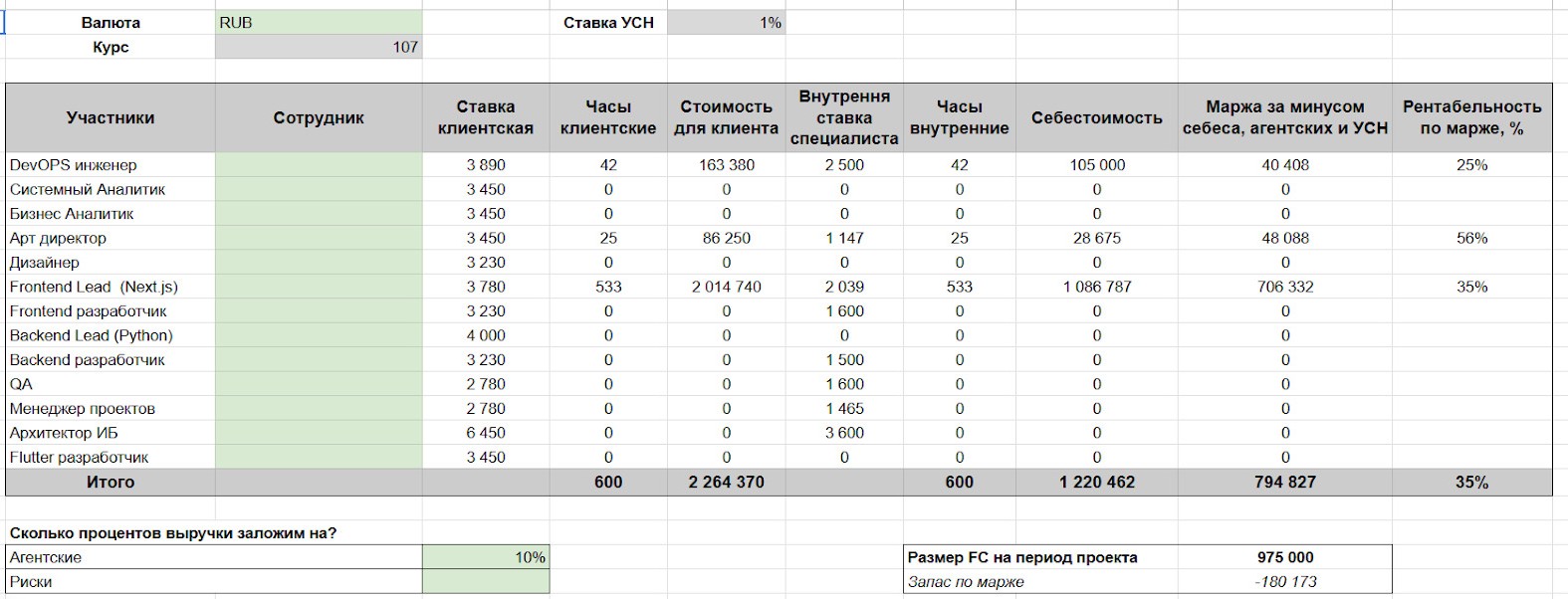 Раньше цены на проекты ставили «на глазок», не учитывая риски и себестоимость. В ноябре 2024 стали считать по-новому и внедрили калькулятор маржинальности проектов с учетом: