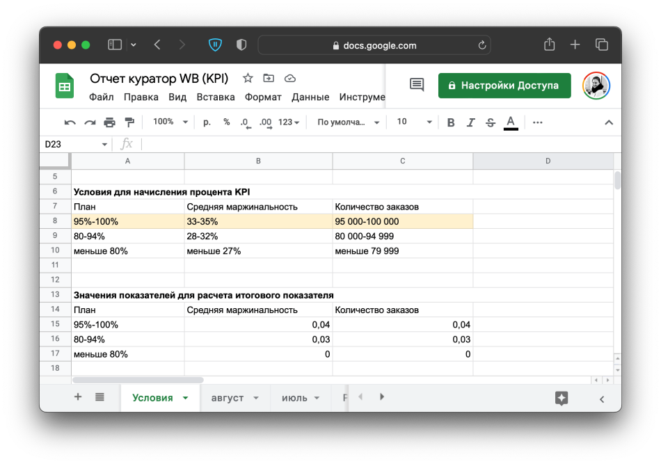 В итоге показатели суммируются в процент от объема продаж, который логист получает деньгами. Для расчета разработали отдельную таблицу, что-то вроде калькулятора: