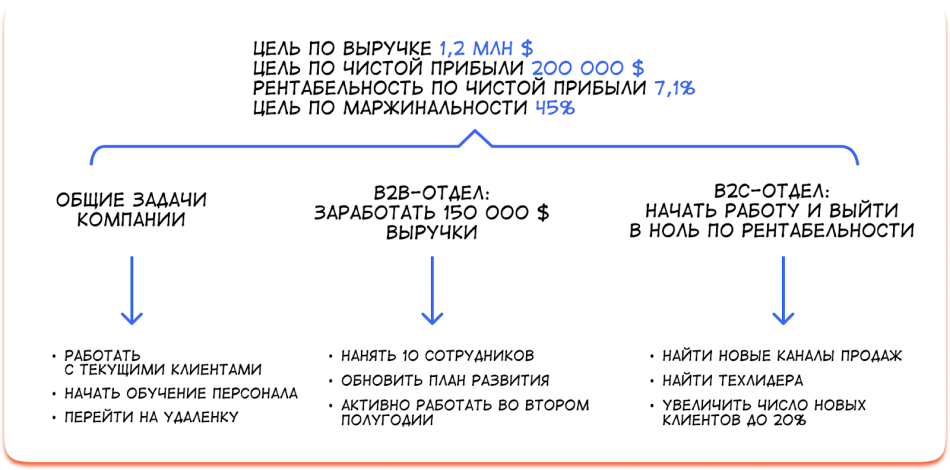 Если бы у компании не было цели разработать бюджет, то новые сценарии развития мы бы строили на основе финансовой модели компании. Ставили цели по выручке, прибыли, рентабельности и рассчитывали целевые показатели для сотрудников.