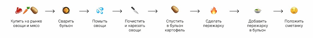 Процессы окружают человека везде, а не только в бизнесе. Например, приготовление борща — это тоже процесс. На входе у вас есть мясо, овощи и специи, а на выходе — готовый суп. Всё, что между этими двумя точками, и есть процесс.