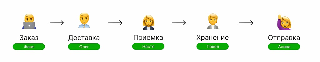 Иногда предприниматели говорят: «У двух моих сотрудников одинаковые задачи, поэтому они делят ответственность пополам». Это неверный подход. У логиста и кладовщика могут быть смежные задачи — например, они вместе могут заполнять накладные и проводить приемку. Но при этом функции у них разные. Логист будет отвечать за функцию доставки товаров до склада, а кладовщик — за хранение и формирование заказов.