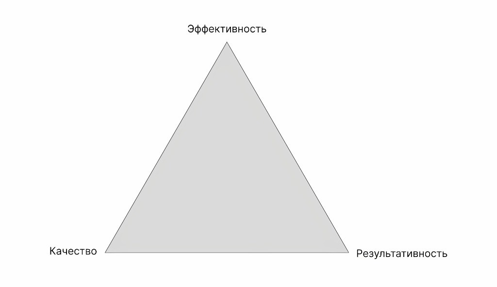 Главный треугольник бизнеса — это треугольник, на вершинах которого находятся три ключевых для компании показателя: результативность, эффективность и качество.