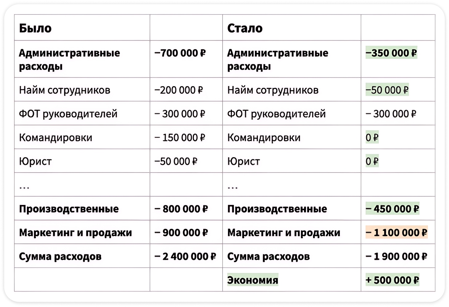 Прежде чем урезать расходы, задайте себе вопрос: «Как это повлияет на качество продукта, лояльность клиентов и устойчивость компании через 6–12 месяцев?» Если ответ вызывает сомнения — ищите другие пути экономии.