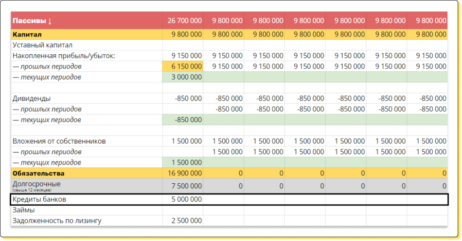 Пассив — это то, за счет чего бизнес купил активы. Например, кредит от банка на оборотку, вложенные деньги собственника, займы от другой компании и так далее.