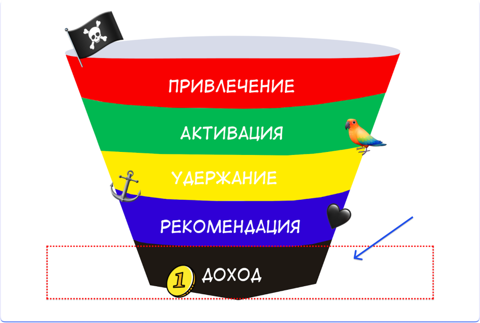 Доход — это выручка. Если клиенты двигаются по воронке, то к этому моменту компания уже начинает зарабатывать деньги.