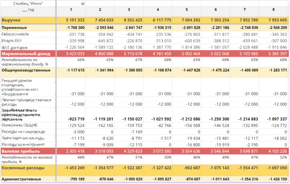 Отчет о прибылях и убытках, или ОПиУ, — чтобы понимать, сколько аптека заработала и на что потратила свои деньги. Вот как выглядит ОПиУ:
