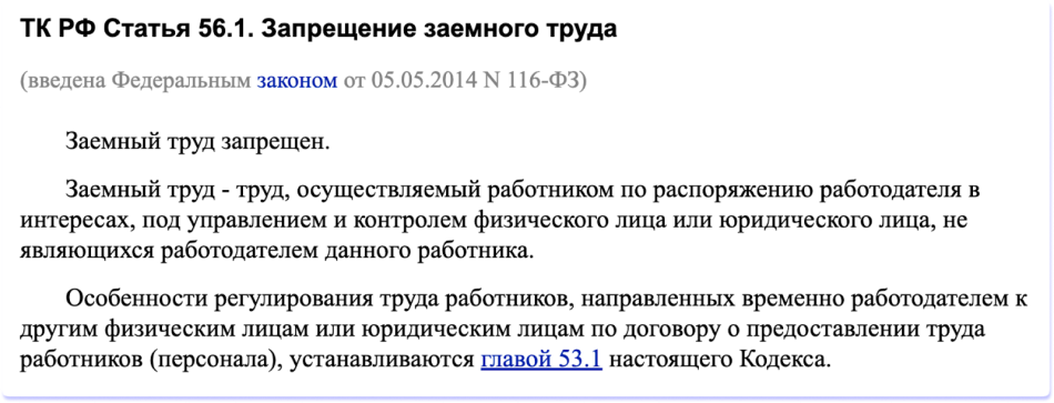 По закону в России запрещен заемный труд, то есть нельзя взять сотрудника из любой компании — только из аутстаффингового агентства.