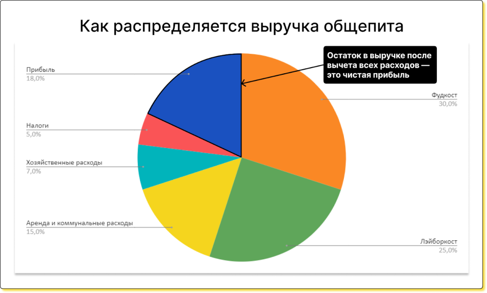 Вот как может выглядеть распределение выручки общепита по статьям ↓