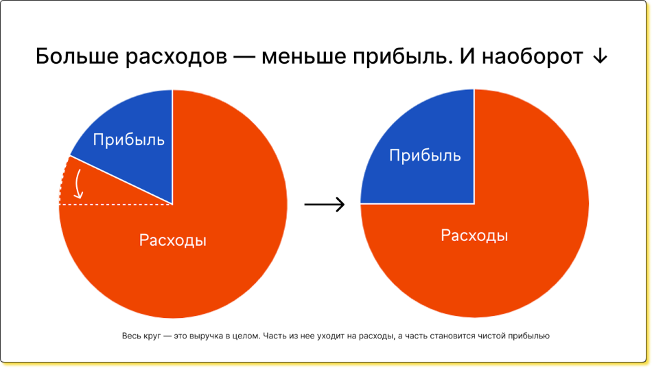 На рентабельность влияют расходы. Чем они выше, тем больше выручки съедают и тем меньше в итоге получается прибыли.