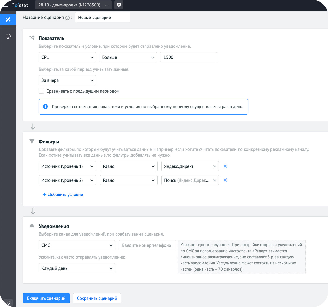 Как быть: регулярно сверяйте данные из отчётов сквозной аналитики с отчётами рекламных кабинетов и CRM. Настройте уведомления в «Радаре», о котором мы рассказывали выше. И оперативно реагируйте на аномалии.