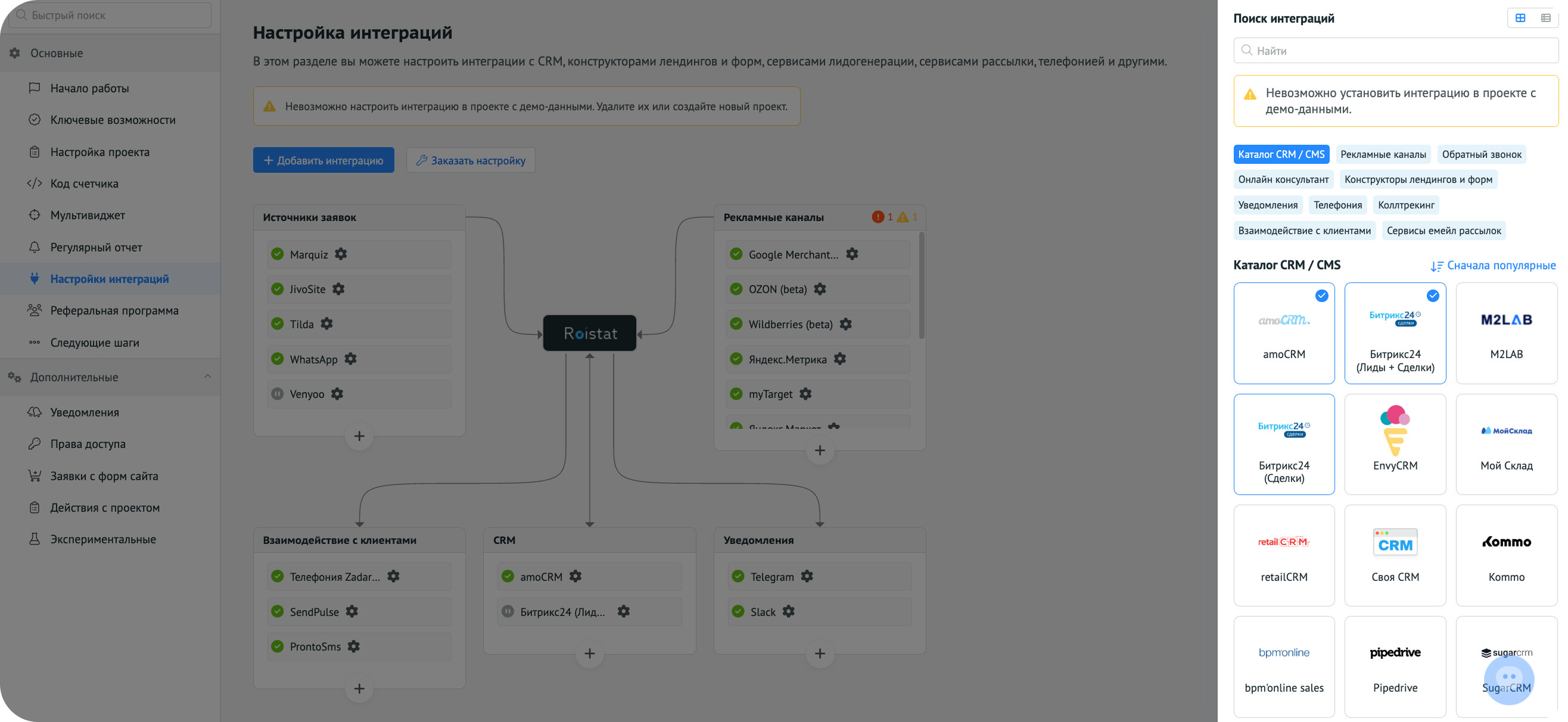 Например, в Roistat для этого есть готовые интеграции с популярными CRM-системами.