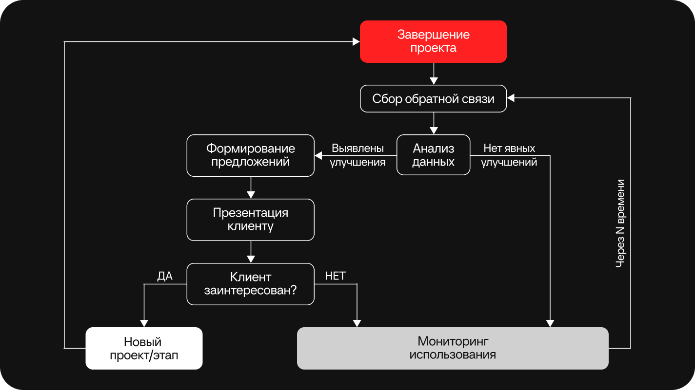 Срок: от 6 месяцев до 2+ лет (часто идет параллельно с основным проектом и продолжается после его завершения).