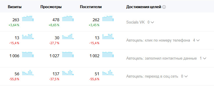 Можно настроить цели и отслеживать конверсии, чтобы понимать, насколько эффективно сайт выполняет бизнес-задачи (заявки, покупки и т.д.).