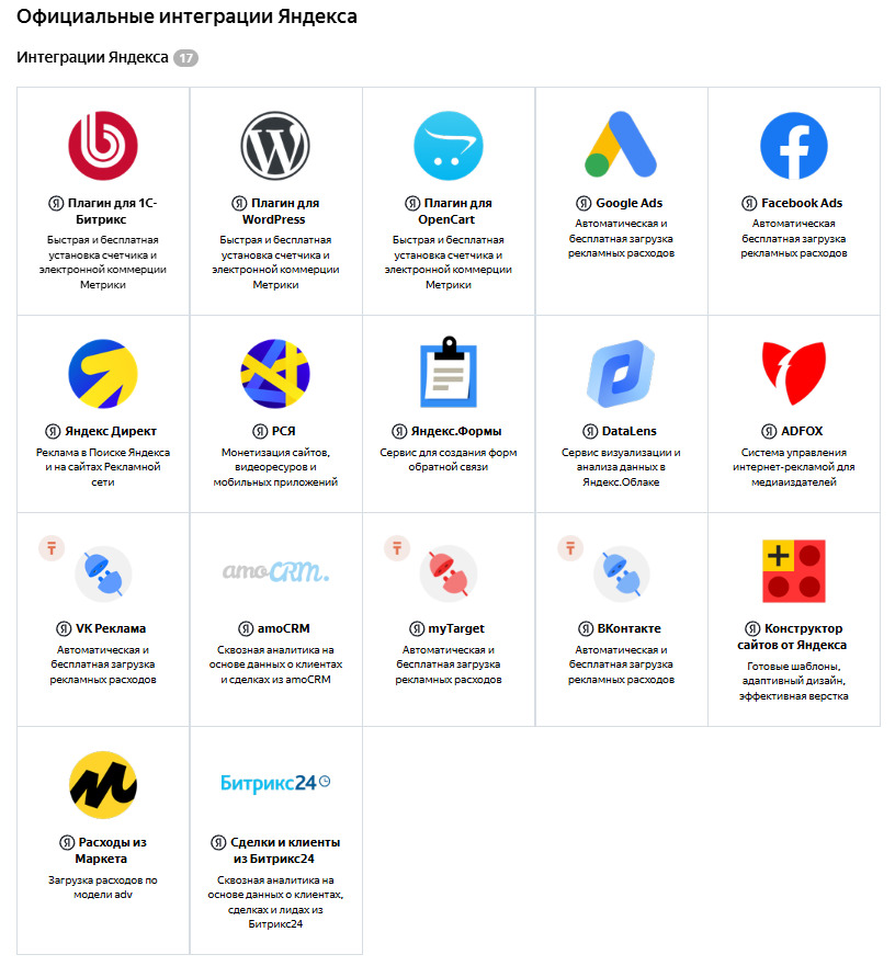 Яндекс.Директ, CRM-системы, e-commerce платформы, CMS (WordPress, Joomla и другие), системы управления ставками, сторонние сервисы через открытое API.