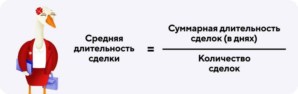 Чтобы рассчитать средний цикл сделки в компании, складывают количество дней каждой сделки и полученную сумму делят на количество сделок.