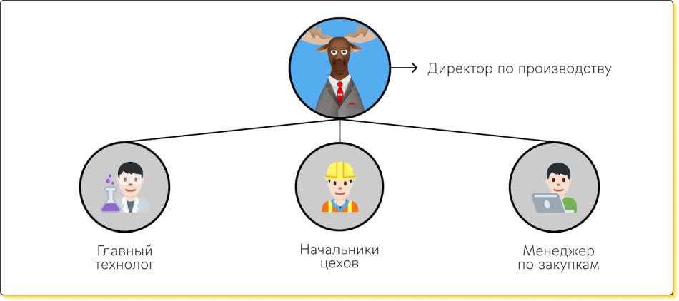 Директору по производству подчиняются главный технолог, начальники цехов и менеджер по закупкам — если в компании нет отдела по закупкам.