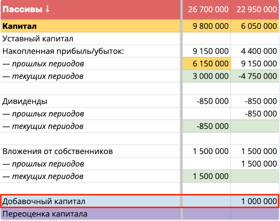 Если добавочный капитал растет, значит, имущество компании высоко ценится на рынке. Либо собственник продал всё, что у него есть, и влил эти деньги в бизнес. Но, надеемся, всё же первое :—)