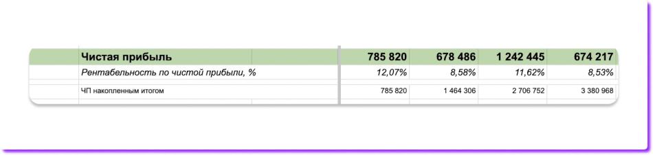 В конце вы получите чистую прибыль, из которой уже вычли все основные расходы ↓