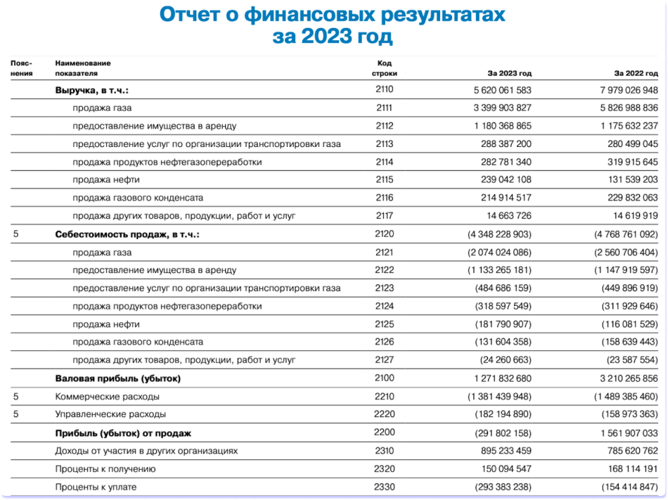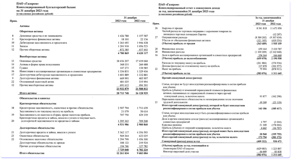 Финансовая отчетность этих компаний обычно публикуется на официальных сайтах и доступна каждому человеку. Вот как выглядит отчетность по МСФО Газпрома за 2023 год: