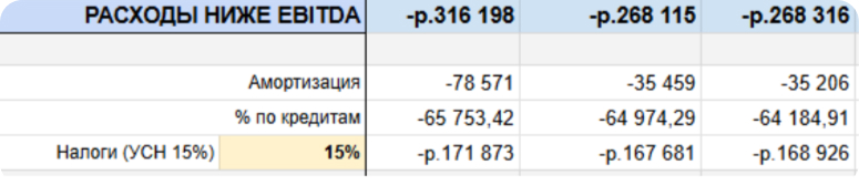 Шаг 9. Смотрим, ниже ли расходы, чем EBITDA. Важно убедиться, что размера операционной прибыли хватает на покрытие расходов (проценты по кредитам, налоги и амортизацию). То, что осталось за вычетом всех расходов, и будет чистой прибылью.