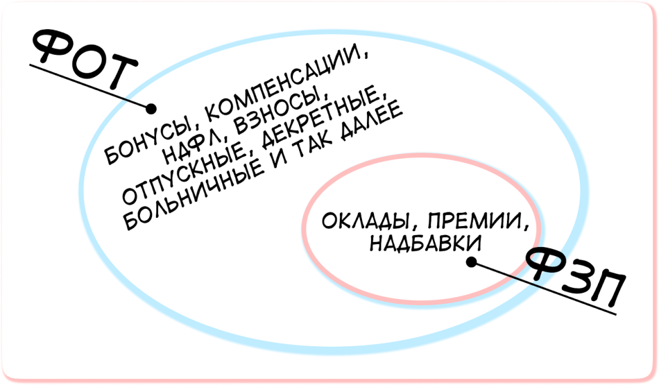 Для начала отметим: ФЗП (фонд заработной платы) — это только часть ФОТ.