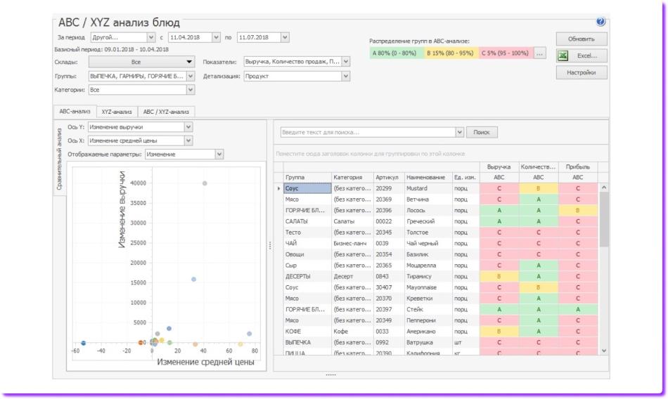 Проводить ABC-анализ по категориям меню. В ABC-анализ входят три критерия: