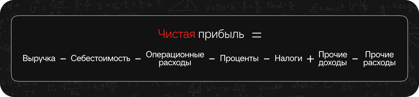 Чистая прибыль — это деньги компании, которые остаются после вычета всех расходов и обязательных платежей из выручки.
