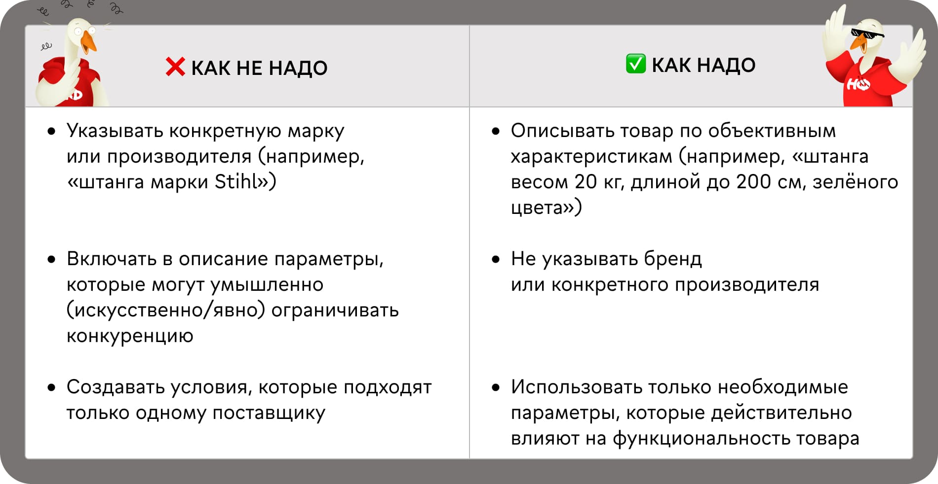 Чтобы закупка была честной и доступной для всех поставщиков, важно правильно формулировать требования.