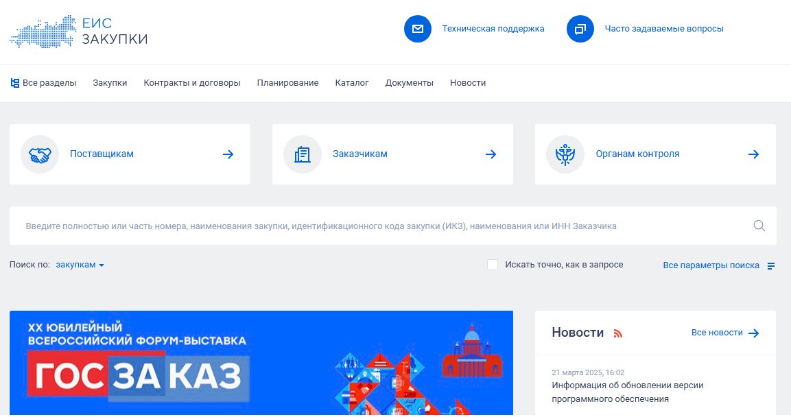 ЕИС (Единая информационная система в сфере закупок) — главный федеральный портал для всех госзакупок по 44-ФЗ и 223-ФЗ. Здесь публикуется информация о тендерах, контрактах и отчётах заказчиков.
