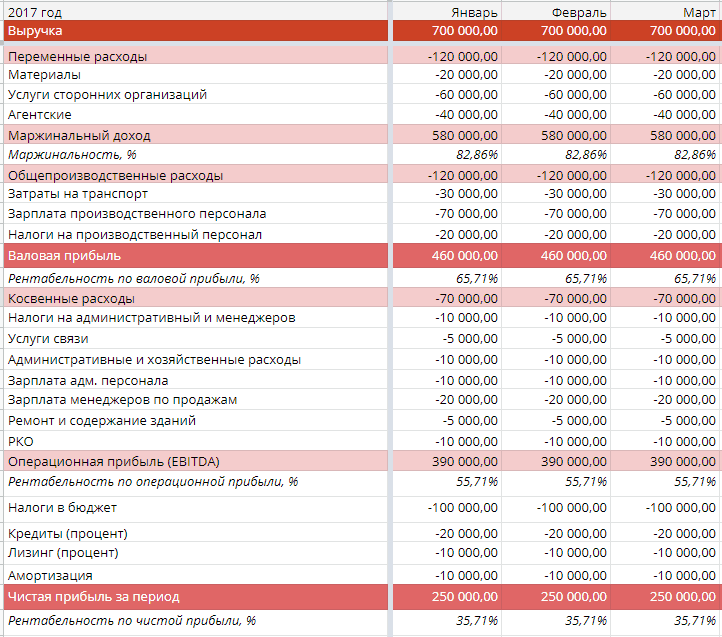 Что лично я смотрю в ОПиУ? Во-первых, перед тем, как выдать клиенту какое-то предложение на объект, я анализирую, сколько он займет у нас времени, и оцениваю, какое количество средств мне придется потратить в следующем месяце. Чтобы сделать расчеты, я использую информацию по затратам прошлых периодов.