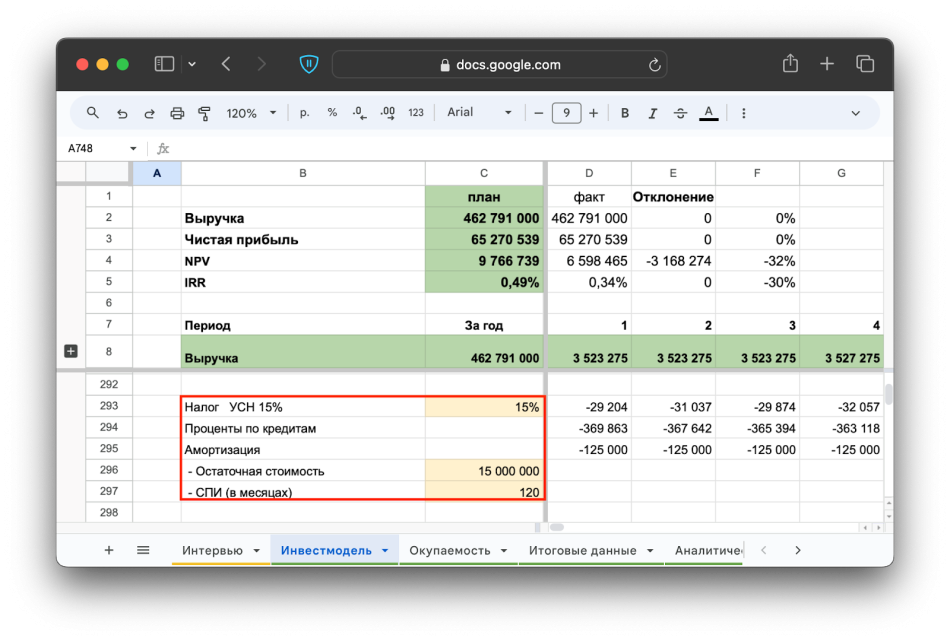 Все эти показатели встроены в шаблон финансовой модели инвестиционного проекта Нескучных финансов. Этот шаблон можно скачать бесплатно, сделать себе копию и возвращаться обратно в статью, чтобы по ходу заполнять свой файл ↓
