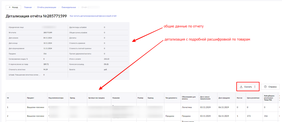 Wildberries отправляет отчет продавцу каждый понедельник. В нем есть много интересного: от продаж и возвратов до штрафов и комиссий.