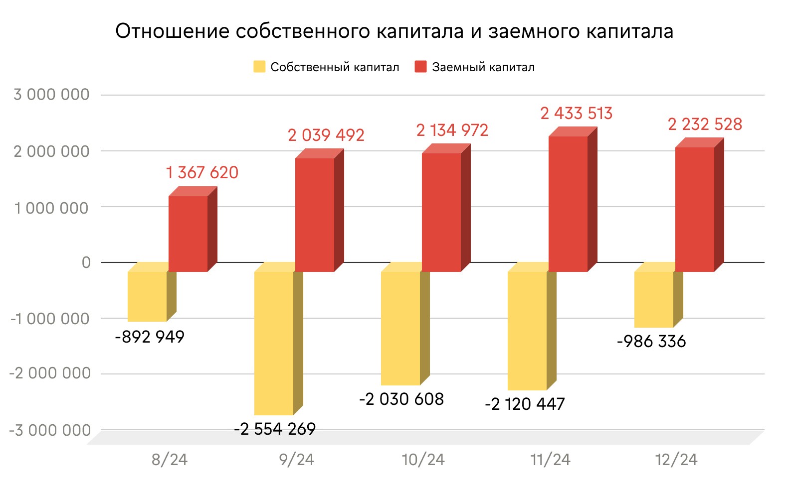 По результатам работы с финдиром, в октябре и декабре 2024 года была получена чистая прибыль (в декабре — 1 134 111 ₽), а в ноябре зафиксирован минимальный убыток. Это позволило начать сокращение дыры в собственном капитале — главной цели сотрудничества с Нескучными.