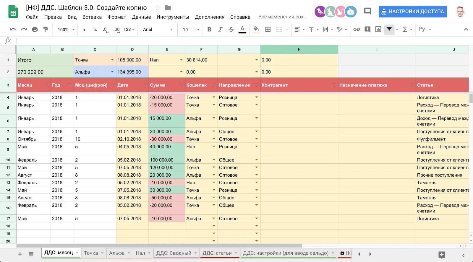 Главное, что нужно запомнить по отчету ДДС: остатки на расчетных счетах и в таблице должны сходиться. Подробнее о том, как собрать отчет ДДС, мы рассказали в статьях «Учет движения денежных средств — организация процесса в 6 шагов» и «Как начать вести учет денег в бизнесе».