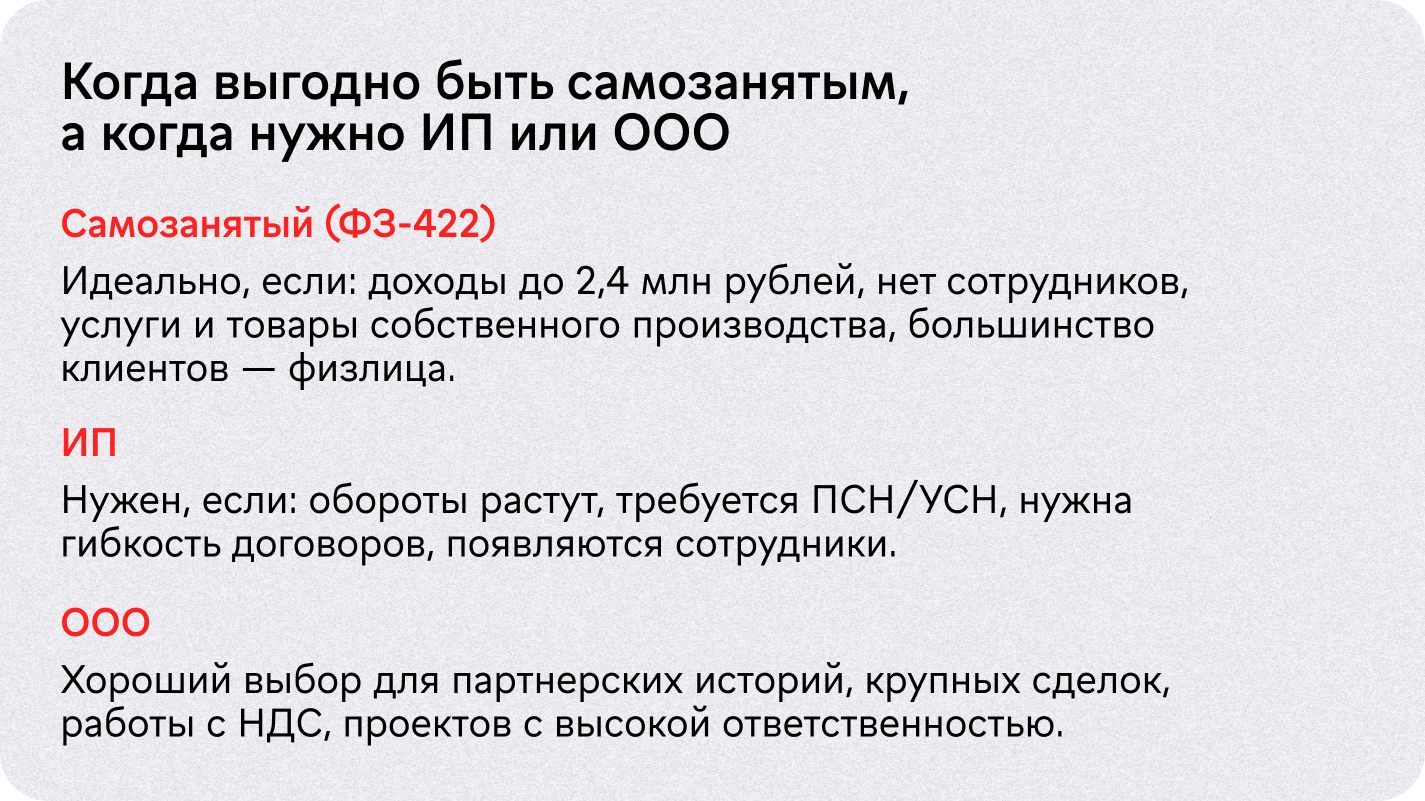 2. Зарегистрировать деятельность. Самозанятый, ИП или ООО.