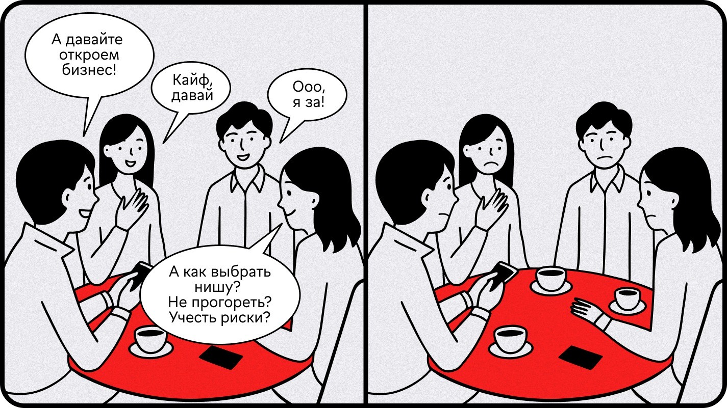 Практическая рекомендация: часто новички уходят в двухнедельные исследования рынка, собирают презентации, таблицы, тратят деньги на аналитиков. На практике это всё бесполезно, если нет данных от реальных клиентов.