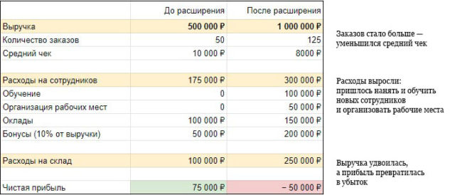 Понимаете принцип? Расширение бизнеса ведет к росту расходов.