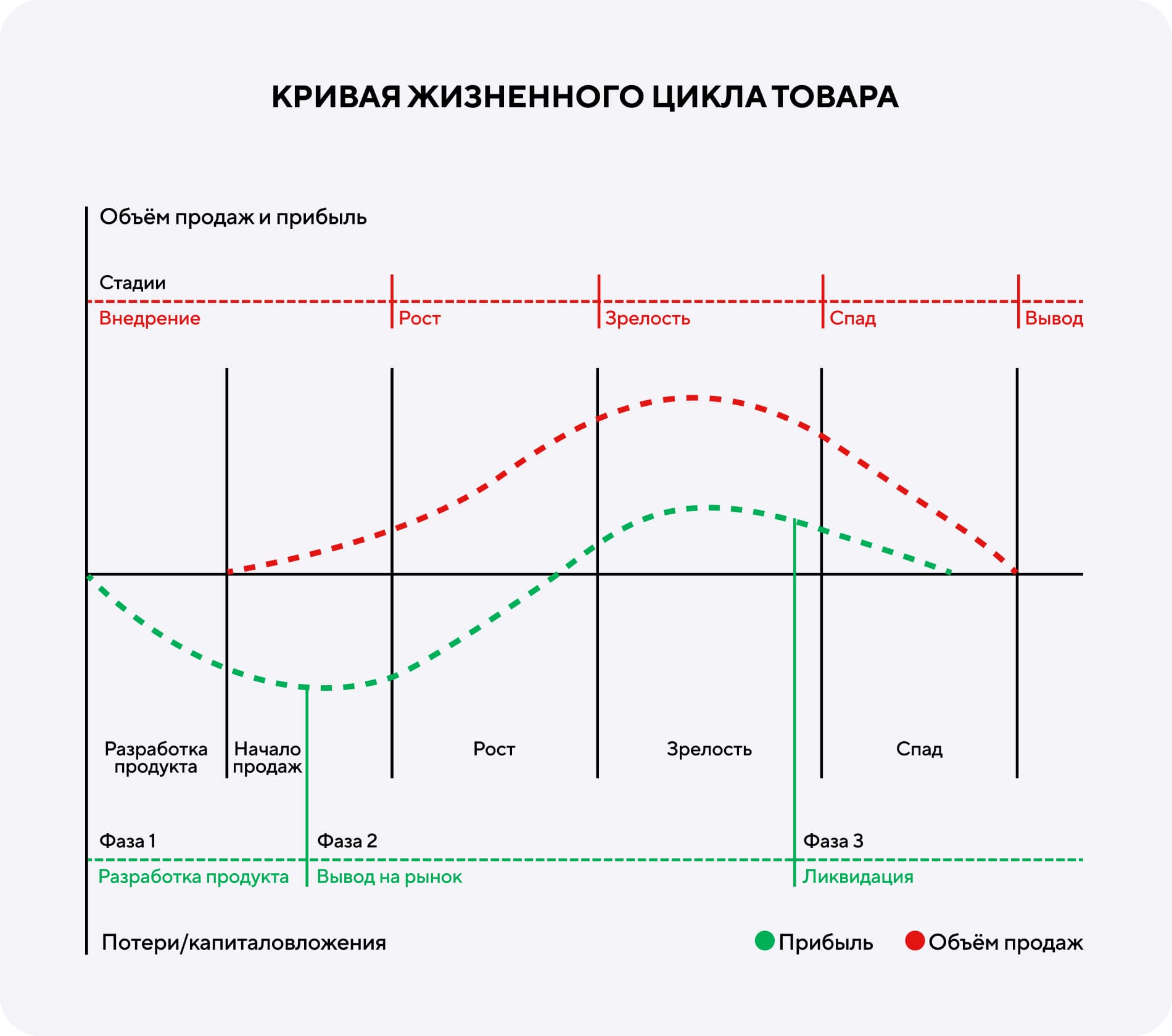 Жизненный цикл товара — это показатель, который напрямую влияет на прибыль компании от продаж. Любой товар проходит несколько стадий — от разработки и внедрения до спада, прежде чем уйти с рынка или трансформироваться во что-то новое.