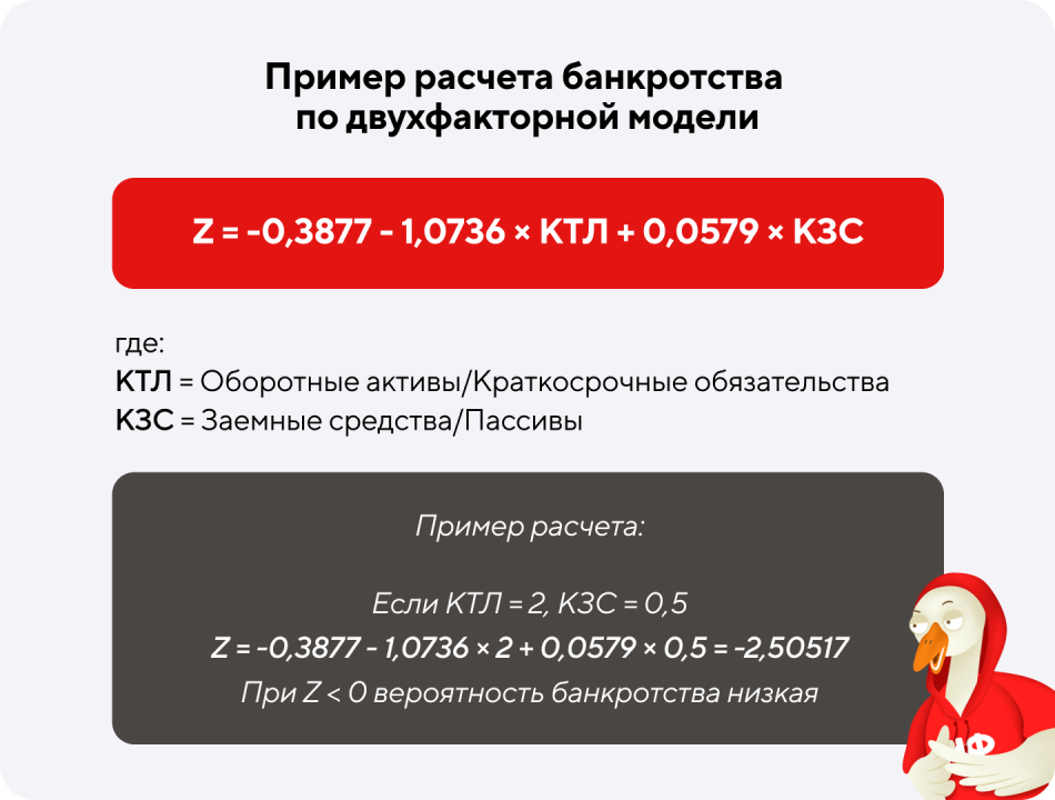 Проще говоря, Альтман придумал формулу, которая берет самые важные цифры из этих документов и на их основе определяет, насколько компания финансово устойчива.