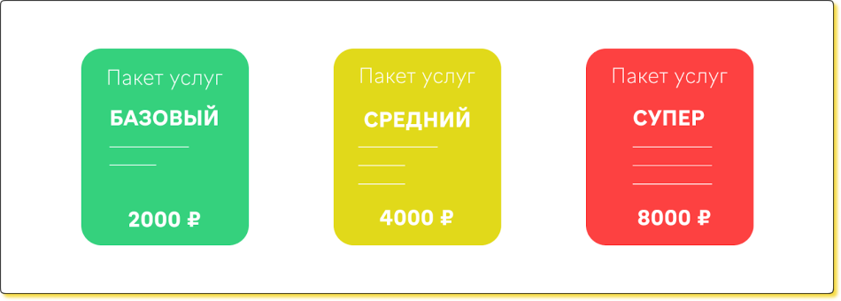 При этом базовый пакет может привлечь новых клиентов — тех, кому хочется только попробовать. А суперский — принести компании больше прибыли.