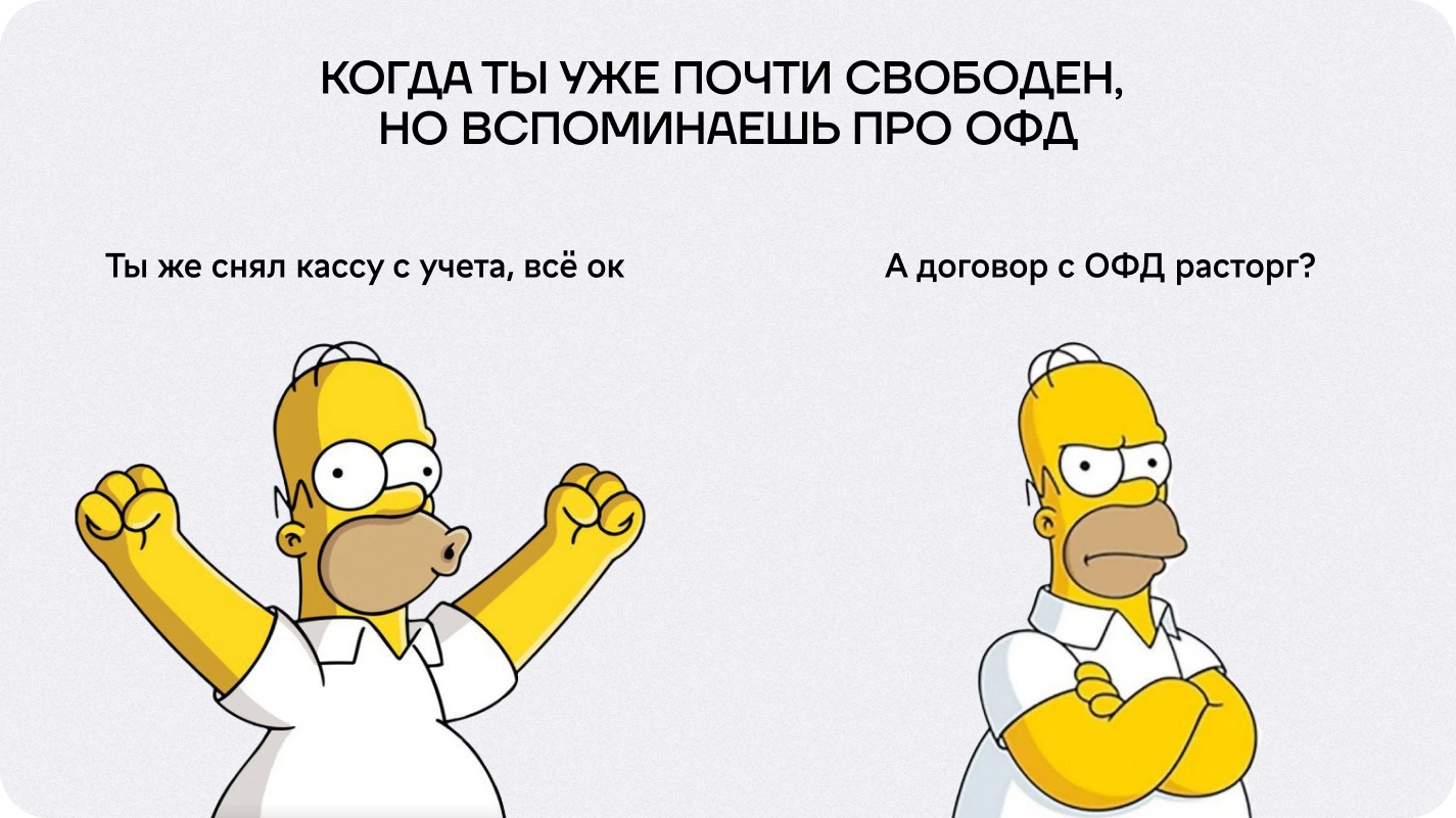 Ликвидировали бизнес, продали последнюю кассу и выдохнули. Кажется, всё позади. Но через полгода начали приходить звонки от коллекторов, а кредитная история оказывается испорчена из-за долга в пару тысяч рублей. Виной всему — не расторгнутый вовремя договор с оператором фискальных данных (ОФД).