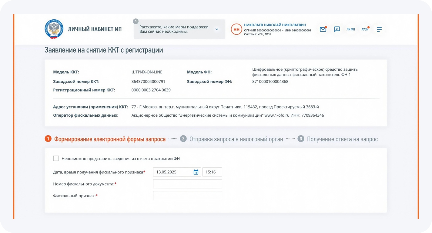 Перед подачей заявления в налоговую нужно выполнить важное техническое действие — закрыть фискальный накопитель (ФН).